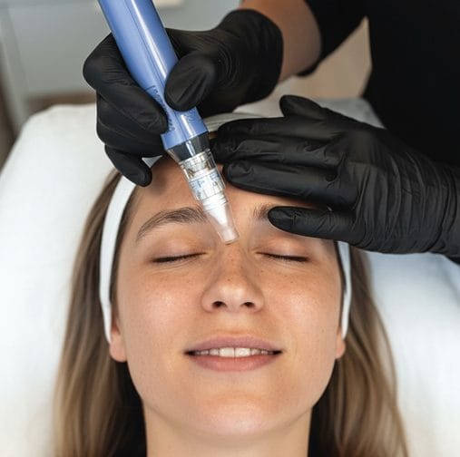 Standard microneedling uses fine needles to create controlled micro-injuries in the skin. These tiny channels stimulate the body’s natural healing response, increasing collagen and elastin production over time.